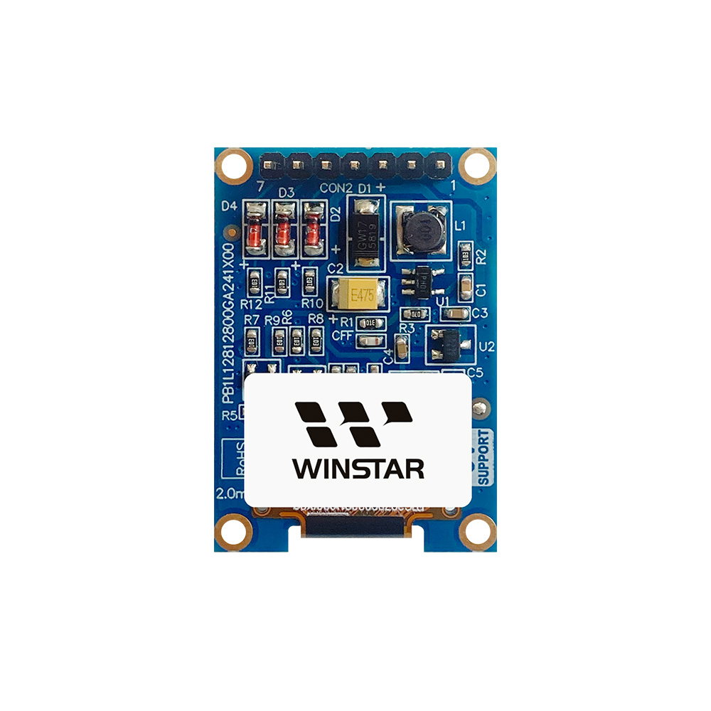 WEA128128G model is a COG with PCB Graphic OLED module, diagonal size 1.12 inch, made of resolution 128×128 pixels. WEA128128G model is the extension item of WEO128128G which has a PCB board on the module. This PCB board with four mounting holes and metal pins (2.54mm pinhole) is easy for customers to fix modules on their applications. WEA128128G module is built-in with SH1107 IC; it supports 4-wire SPI interface, 1/128 driving duty, the supply voltage of logic is 3.0V (typical value), and the current with 50% checkerboard display is 65mA @ 3.0VCC (for white color). The booster circuit has been designed on the PCB version, and the customer only needs to provide a set of VDD voltage to use.