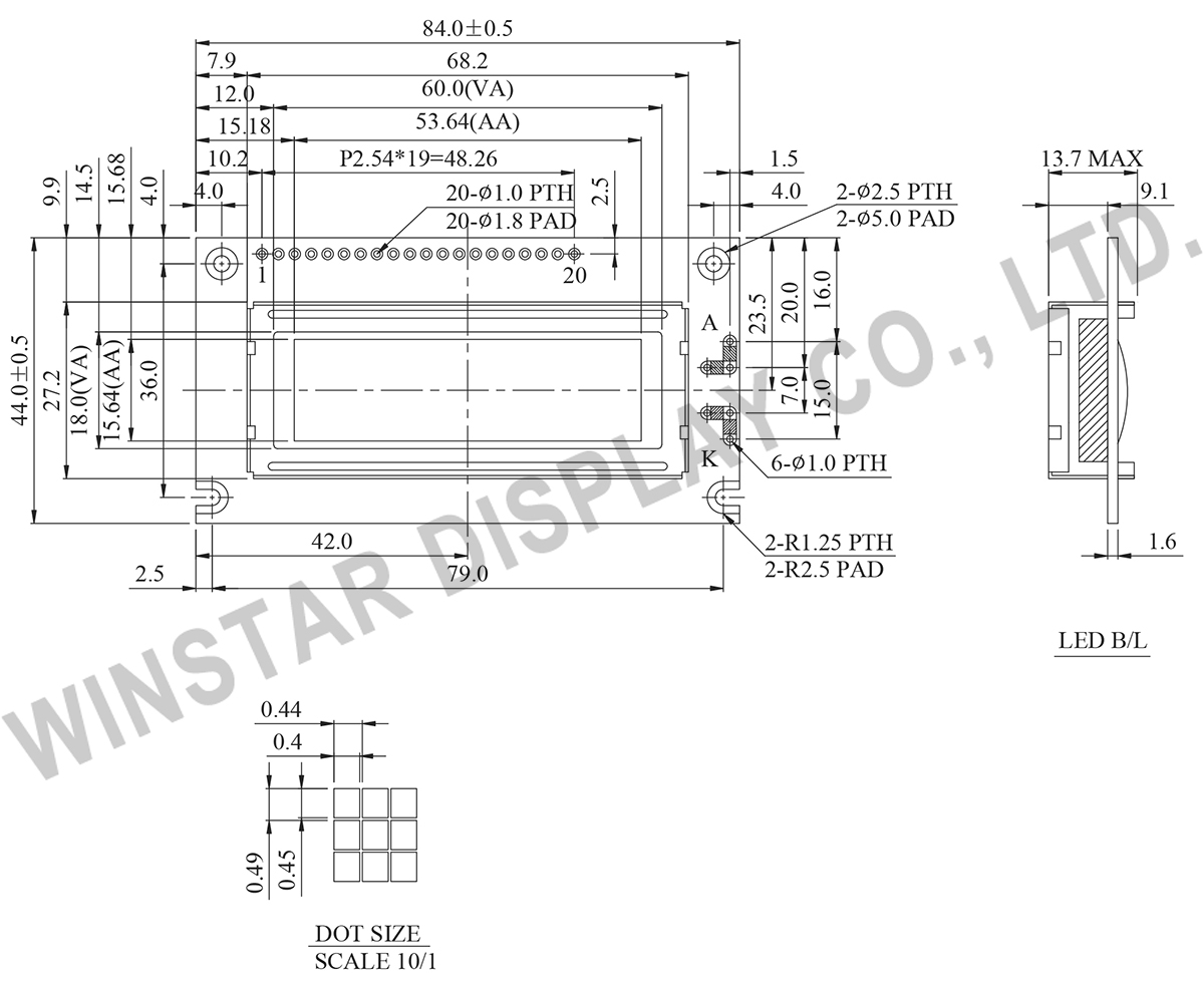 The WG12232A graphic LCD display module series comes with a PCB board, eliminating the need for customers to develop additional PCB boards themselves. Four screw holes are designed on the PCB to facilitate easy installation of the module on the application product. This 122×32 LCD module can operate at temperatures ranging from -20℃ to +70℃, with storage temperatures ranging from -30℃ to +80℃.
