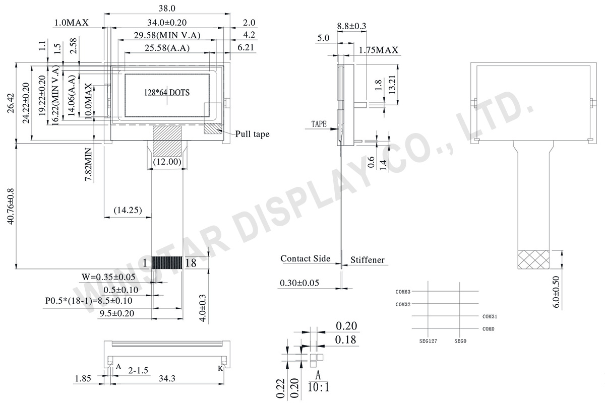| Active area | 25.58 × 14.06 | mm |