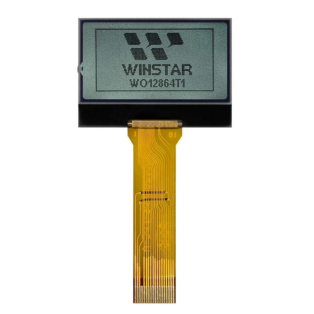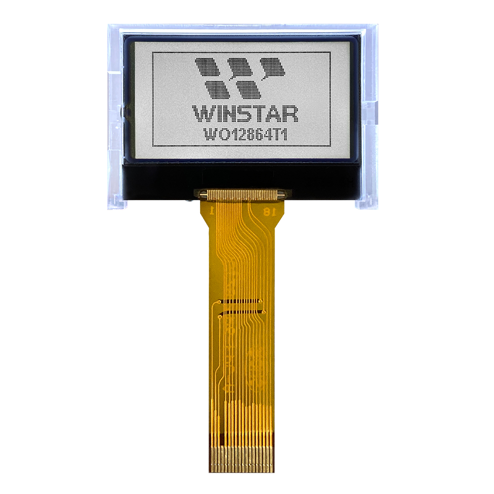 WO12864T1 is a monochrome graphic LCD module made of 128×64 dot matrix format. This COG module is built in with ST7567S IC, it supports 8-bit 6800, 8-bit 8080 parallel and 4-wire serial SPI interface, 1/65 driving duty, 1/9 Bias. WO12864T1 is the alternative model for WO12864T corresponding IC shortage or longer lead-time. This module can be operating at temperatures from -20℃ to +70℃; its storage temperatures range from -30℃ to +80℃. This LCD COG 128×64 display is very suitable for applications that demand more compact package displays.
