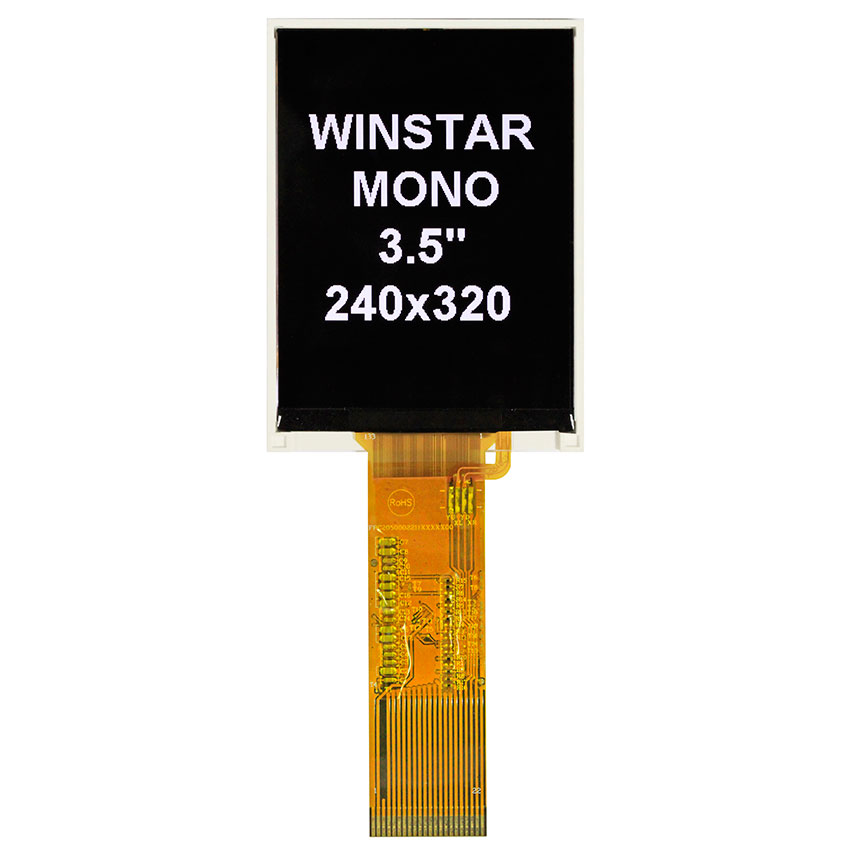 The Winstar WF35N is a graphic TFT LCD display with a diagonal of 3.5 ” and a resolution of 240 x 320 mono TFT Display. This is a monochrome model, but applied in the active matrix TFT; which allows for high contrast (900:1) and short response time.