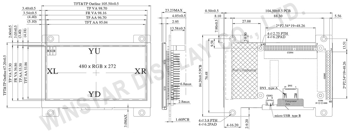 1 3.3V TFT Module Power limit can only output 3.3V,100mA Note1