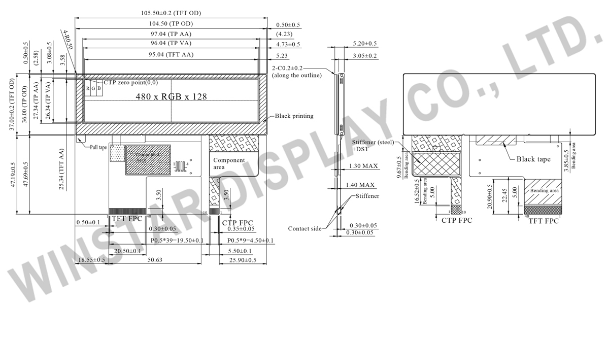 Home TFT LCD Bar Type TFT LCD Bar Type 3.9″ High Brightness, Wide Temperature 480×128 IPS TFT Display with PCAP