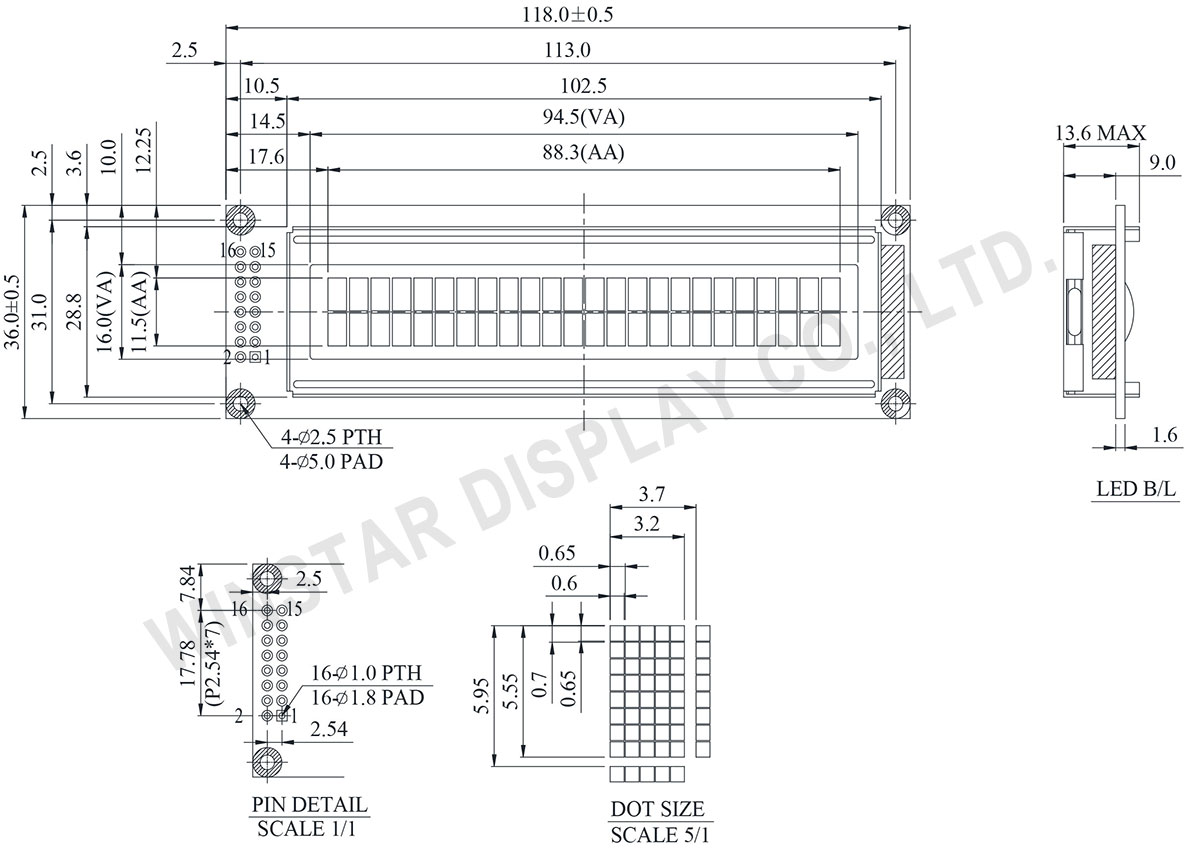 Module dimension 118.0 x 36.0 x 13.6 (MAX) mm