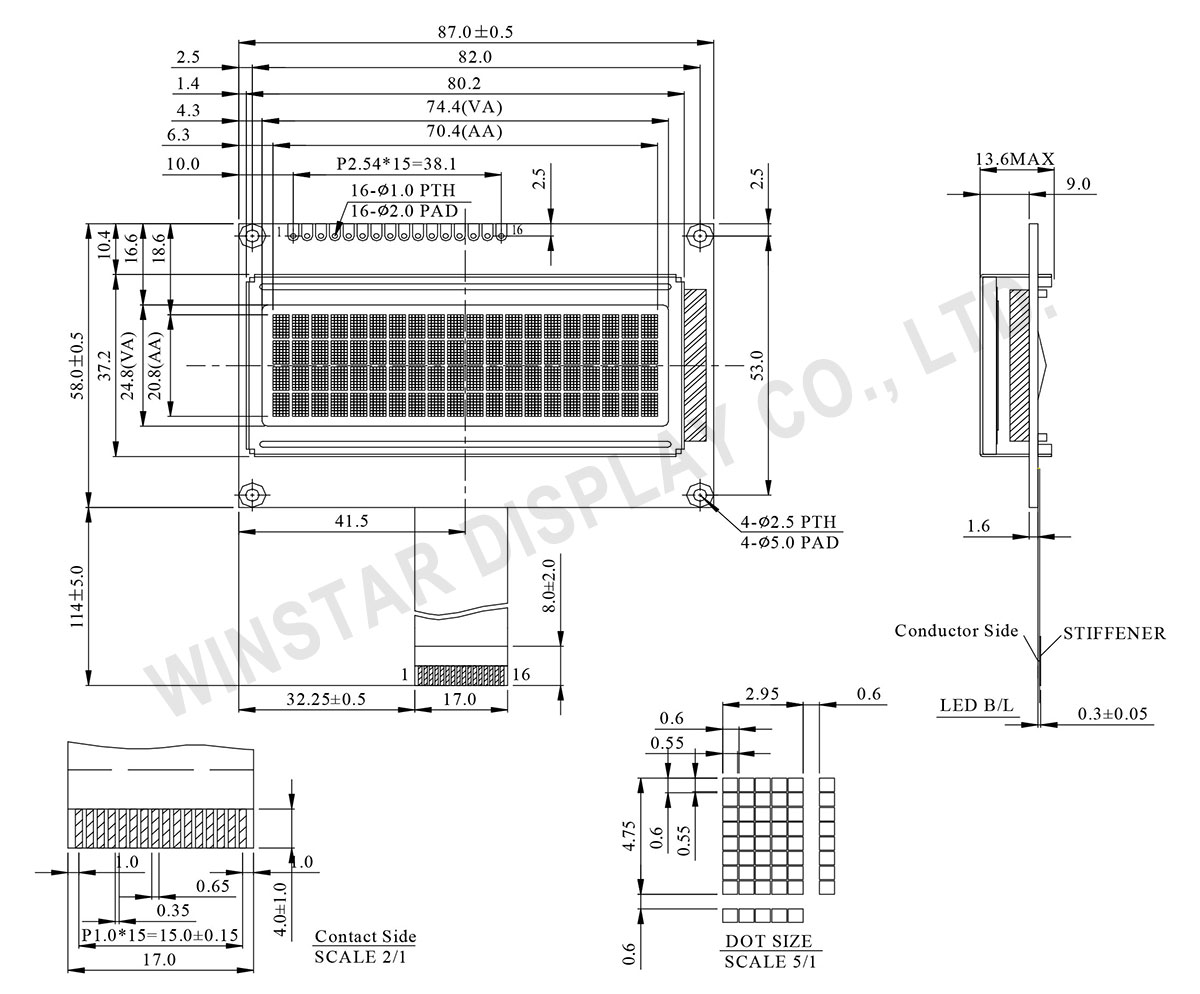 The Character LCD 20×4 Display of WH2004H has the same outline, VA and AA size as WH2004G, but WH2004H having with FFC pinned out.