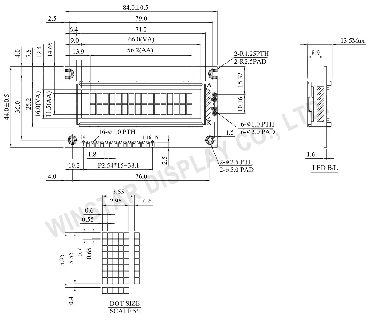 Winstar WH1602A is a 16×2 Character dot Matrix LCD Display Module which is built in with ST7066 controller IC or equivalent; its default interface is 6800 4/8-bit parallel. This display is also available in SPI and I2C interface by using RW1063 controller IC. WH1602A is available in several different backlight colors including blue, green, white, yellow-green, amber, red, white LEDs. There are different character fonts/texts available for ST7066 IC including English/Japanese, English/West European, English/Scandinavian European, or English/Cyrillic (Russian) as options.