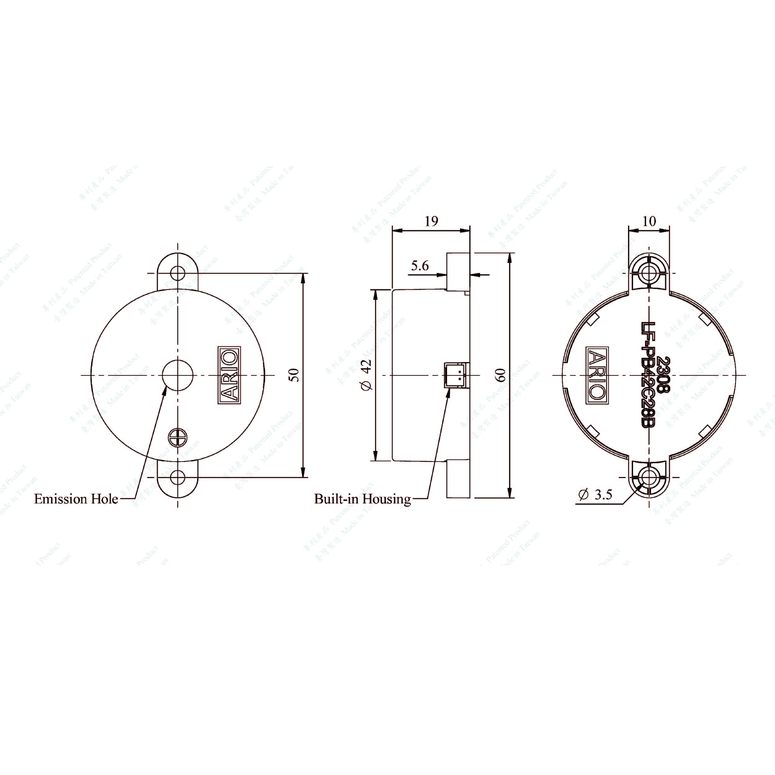 | Sound Pressure Level | Min. 115dB / 9VDC / 10cm Continuous Tone |