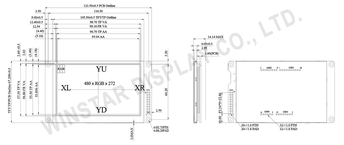 We offer the TFT module WF43WTYBEDST0#000 designed to support the Arduino board. The control signal for WF43WTYBEDST0 is 3.3V; it has a built-in storage device (FLASH 32M). The control signal of WF43WTYBEDST0#000 is 5V; without a built-in storage device (FLASH); but with a MicroSD Socket, pins CON1~CON4 are designed for SPI control (such as for Arduino Uno Rev3). WF43W model can be operating at temperatures from -20℃ to+ 70℃ and storage temperatures from -30℃ to +80℃.